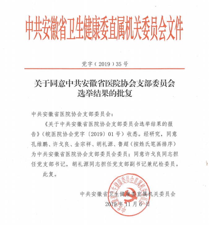 关于同意中共安徽省医院协会支部委员会选举结果的批复