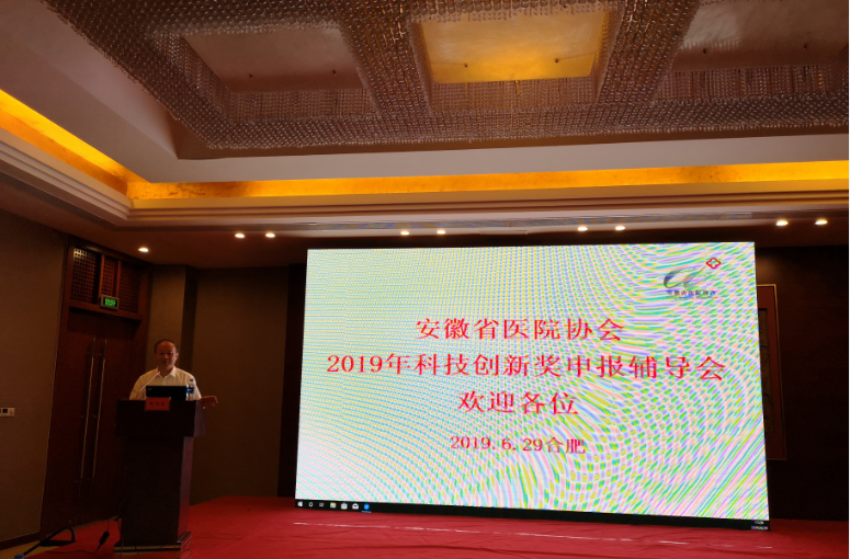 2019年6月29日下午,由安徽省医院协会主办的“2019安徽省医院协会医院科技创新奖申报辅导会”在合肥市天鹅湖大酒店顺利举行。会议邀请华中科技大学附属同济医院经济管理办公室肖万超主任、安徽医科大学第一附属医院王珩副院长、安徽省临床路径管理中心周勤主任担任讲者,围绕“申报书填写规范、申报选题方向及既往获奖项目经验分享”等内容进行授课交流。安徽省医院协会许戈良会长及一百余名医院管理者出席会议。会议由申建民秘书长主持,许戈良会长致辞。