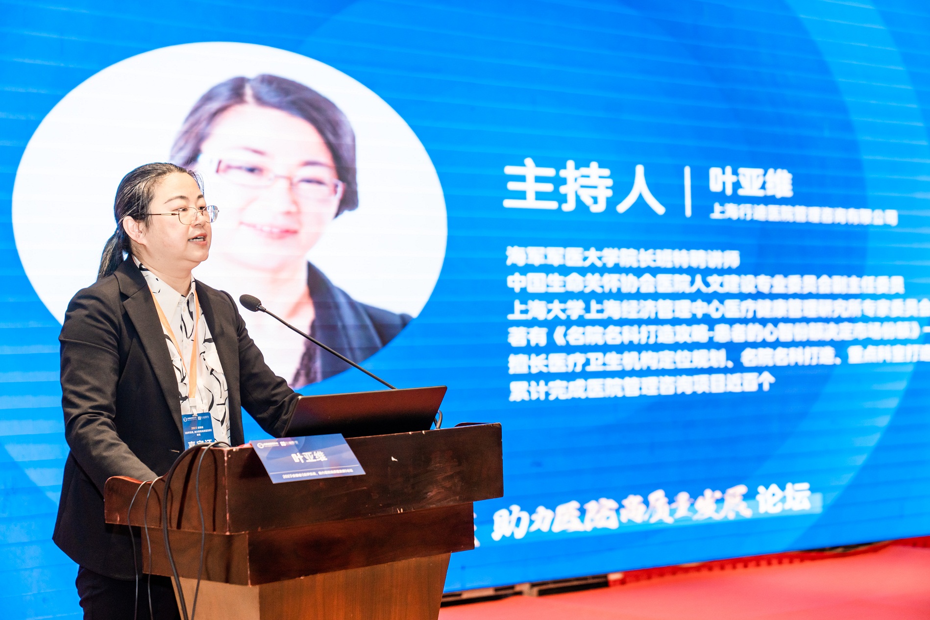 行迪医管创始人叶亚维女士主持开幕式,叶女士从等级医院评审的使命出发,举例国内外医疗案例,阐述等级医院评审对医院质量体系建设的重要意义。