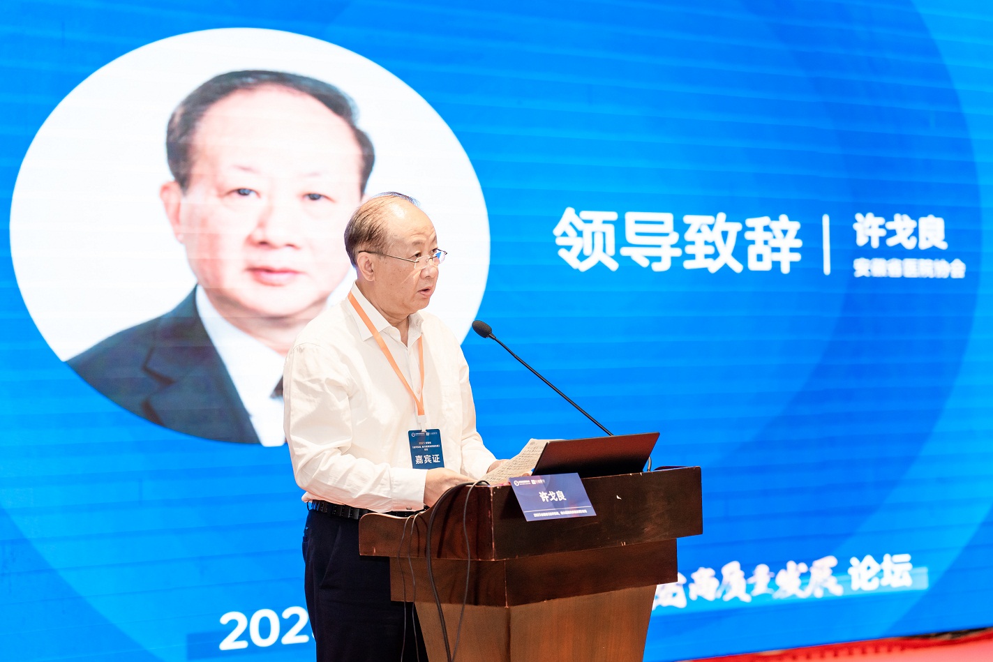 许戈良会长致辞,他指出等级医院评审的初衷是为了患者安全,并呼吁各家医院不忘初衷,以等级评审为抓手,以评促改、以评促进,实现医疗质量提升,保证患者生命安全。