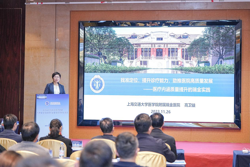 随后,上海交通大学医学院附属瑞金医院医务处处长高卫益就“高质量发展背景下的医疗内涵质量提升”进行专题报告。从品牌战略、变革进步、质量体系、效率提升等方面分享了瑞金医院的成就、现状与未来;同时围绕持续加强学科建设、持续推进医疗技术创新、精细化管理促进运营效率提升、强化绩效引导及取得成效等方面进行了详细讲解。