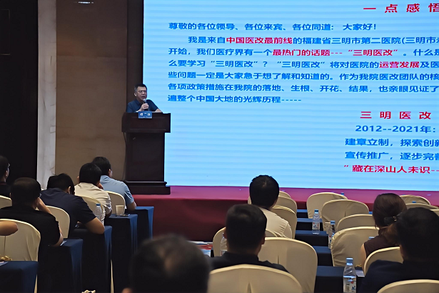 三明市第二人民医院副院长林松就“三明医改新模式下转变观念,强化“三医联动”精细化管理”进行专题报告。