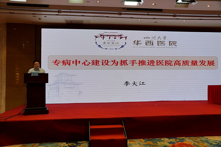 四川大学华西医院医务处处长李大江就“专病中心建设为抓手,推进医院高质量发展”进行专题报告。