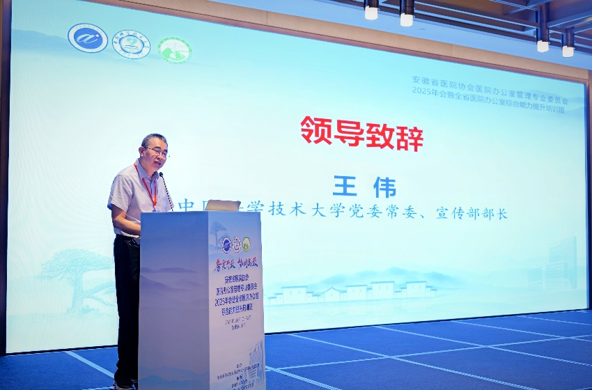 8月22日上午,安徽省医院协会医院办公室管理专业委员会(以下简称“专委会”) 2025年会暨全省医院办公室综合能力提升培训班在黄山市屯溪区隆重开幕。安徽省医院协会会长许戈良,中国科大党委常委、党委宣传部部长王伟,专委会主任委员刘军,中国科大附一院(安徽省立医院)党委副书记姜明,黄山市人民医院院长宋巍,安徽省医院协会秘书长申建民及各副主任委员等领导出席开幕式,开幕式由第三届专委会执行副主任委员兼秘书长、中国科大附一院党政办主任牛憬泽主持。全省共有80余家单位近200名办公室同仁参加会议。