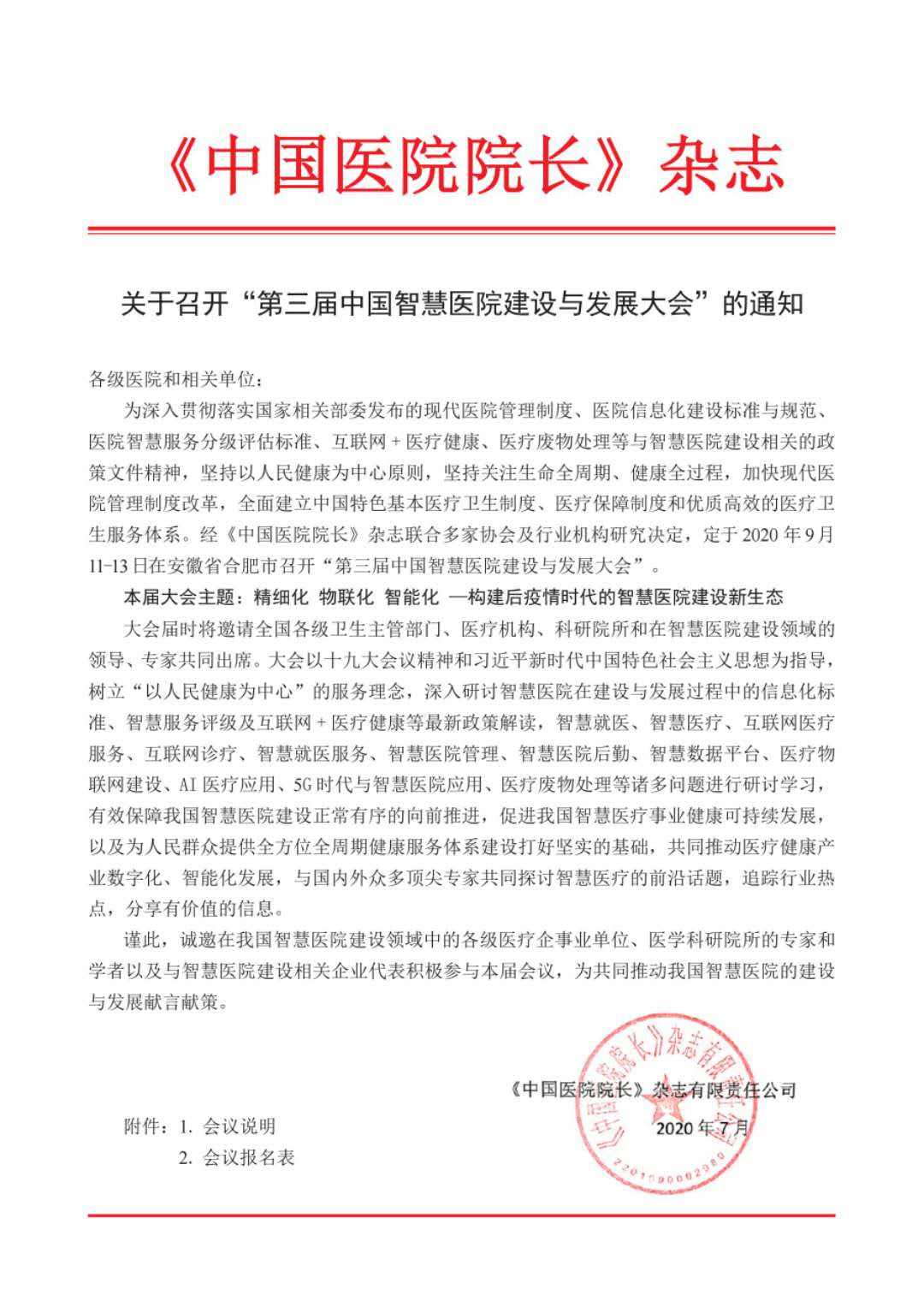 关于召开“ 第三届中国智慧医院建设与发展大会 ”的通知