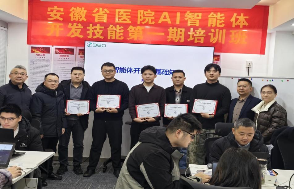 2026年2月1日,由安徽省医院协会信息管理专业委员会主办、360集团协办的安徽省医院AI智能体开发技能第一期培训班正式圆满结业。此次培训积极响应安徽省“人工智能+万物”应用行动方案中“深化智医助理应用、推动医院流程智能化再造”的战略部署,为省内医疗AI创新发展注入强劲动能。安徽省医院协会信息管理专业委员会主任委员郭成、360集团副总裁陈明出席培训班开班式。