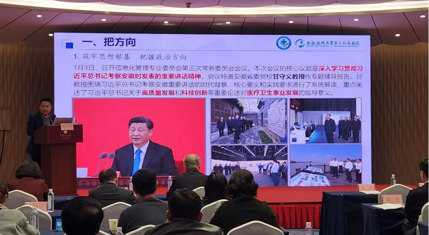 合肥市委党校尹洁教授以《习近平总书记关于树立和践行正确政绩观的重要论述》为题,开展主题党课。党课围绕“政绩为谁而树、树什么样的政绩、靠什么树政绩”这一核心,深入剖析了新时代医疗卫生管理者应有的价值追求。